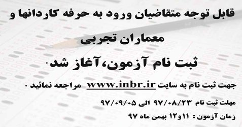 بدینوسیله به اطلاع کلیه داوطلبان آزمون های ورود به حرفه می رساند: نوبت بعدی آزمون های مربوط،در روزهای پنجشنبه و ...