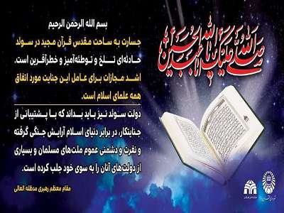 جسارت به ساحت مقدس قرآن مجید در سوئد، حادثهای تلخ و توطئه آمیز و خطرآفرین است، اشد مجازات برای عامل ...