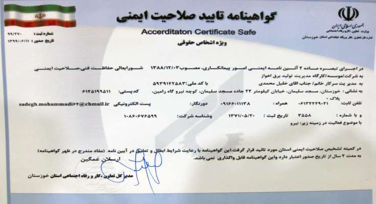اخذ گواهینامه تایید صلاحیت ایمنی توسط نیروگاه رامین اهواز